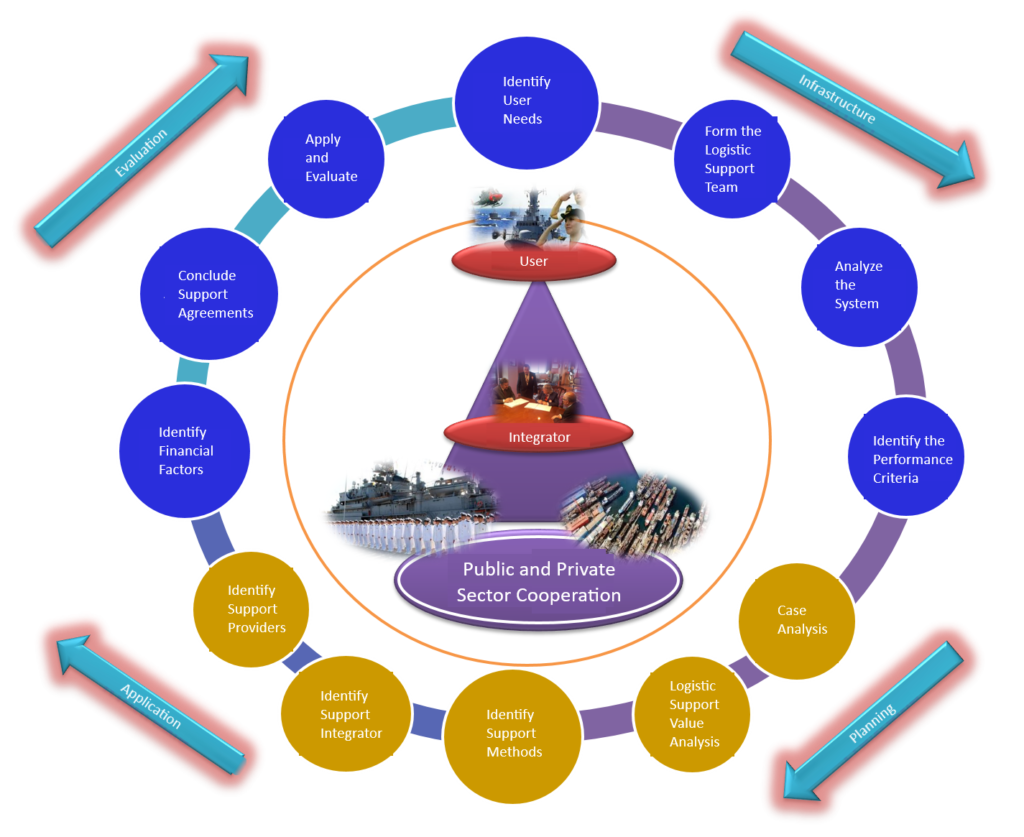 Instead of supplying maintenance, training, data, documents and spare parts as part of traditional procurement by entering into long-term and separate logistics contracts (agreements), it is the approach to supply the specified performance criteria (reliability, operational readiness, cost, logistics trace, logistics time, etc.) with the most appropriate public-private cooperation.